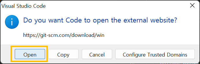 현재는 Git이 PC에 설치되어있지않은 상태로, Git을 다운로드 하라는 가이드가 보이네요.