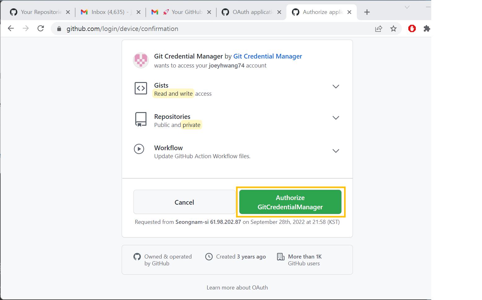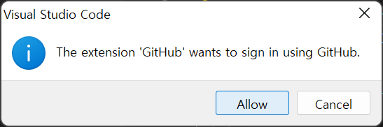 GitHub에 Sign in 하겠다는 메세지가 뜨는데 Allow 해줍니다.