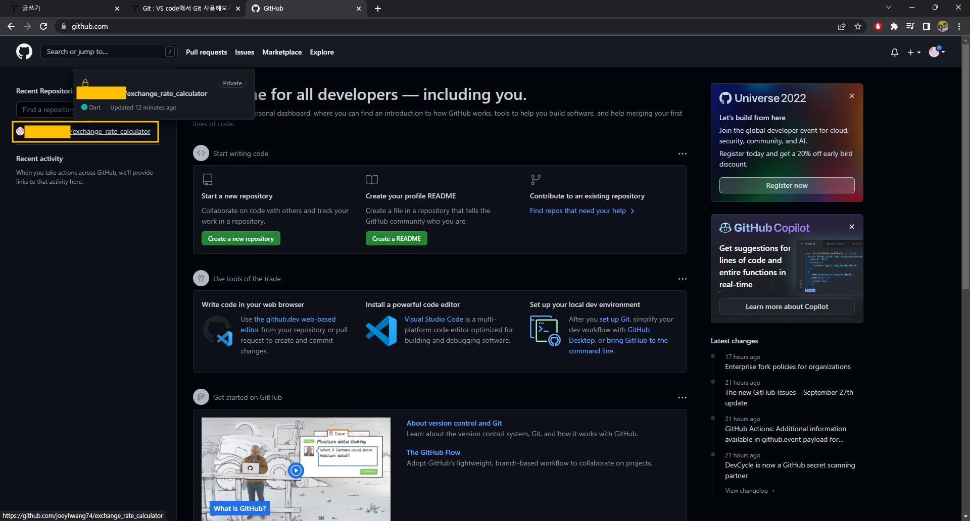 이제 VS code와 GitHub를 연동시켜주겠습니다.