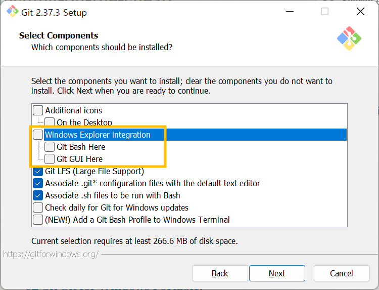 설치 옵션에서 저는 Windows Explorer integration을 제외했습니다.