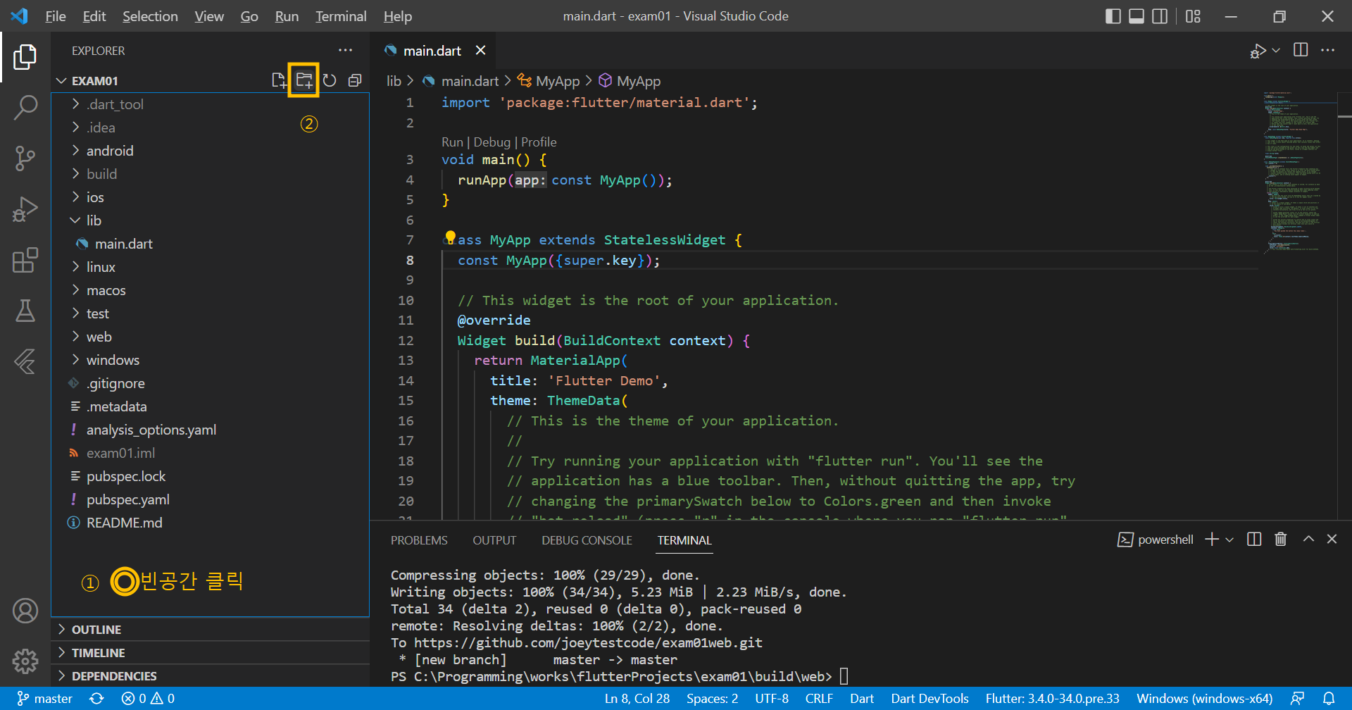VS code로 Flutter app을 만들면서 GitHub를 연동하고 계신 분들은,