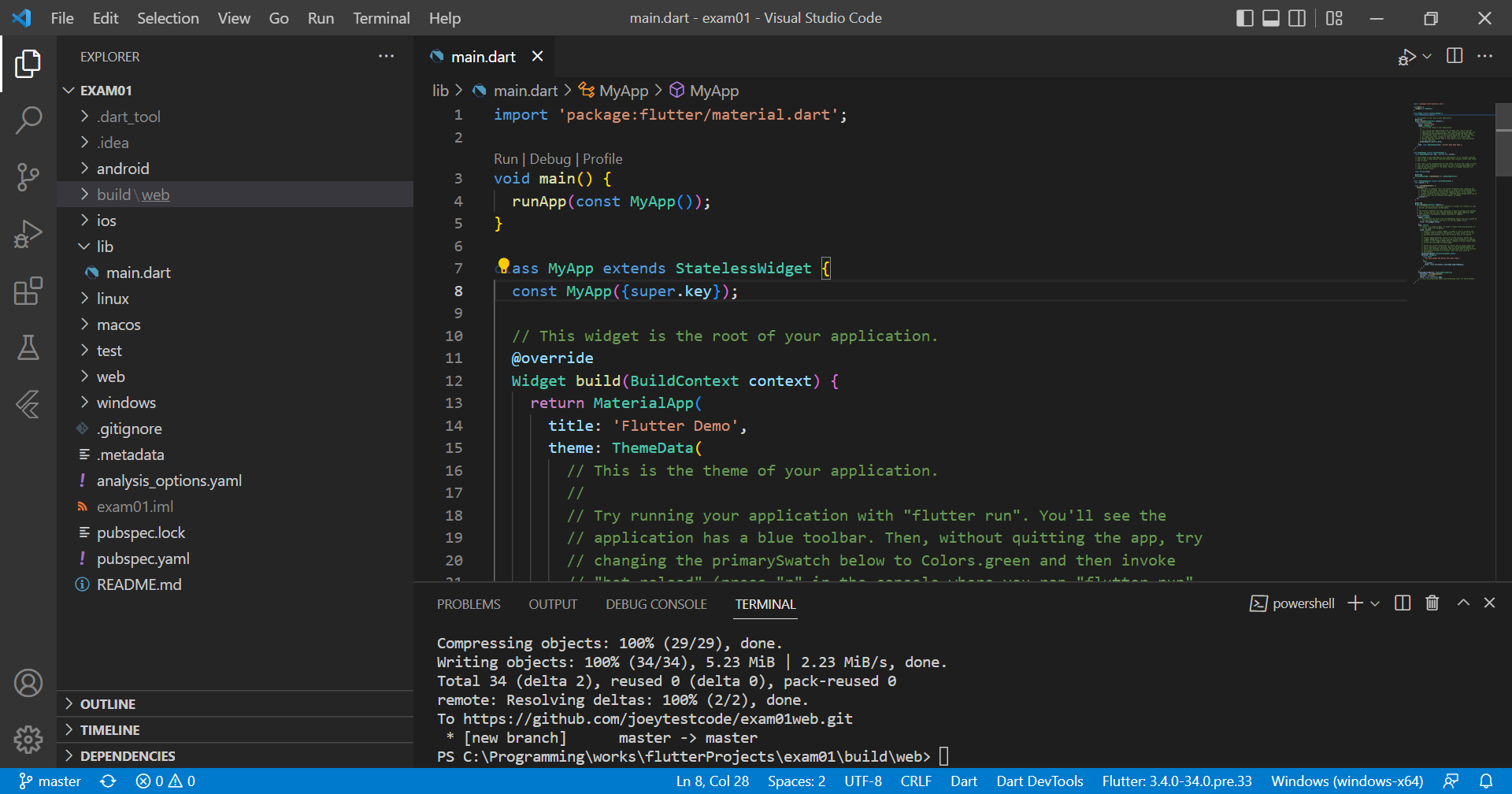 이번 포스팅에서는 로컬에서 작업 중인 Flutter Project에서 작업을 마무리하고,