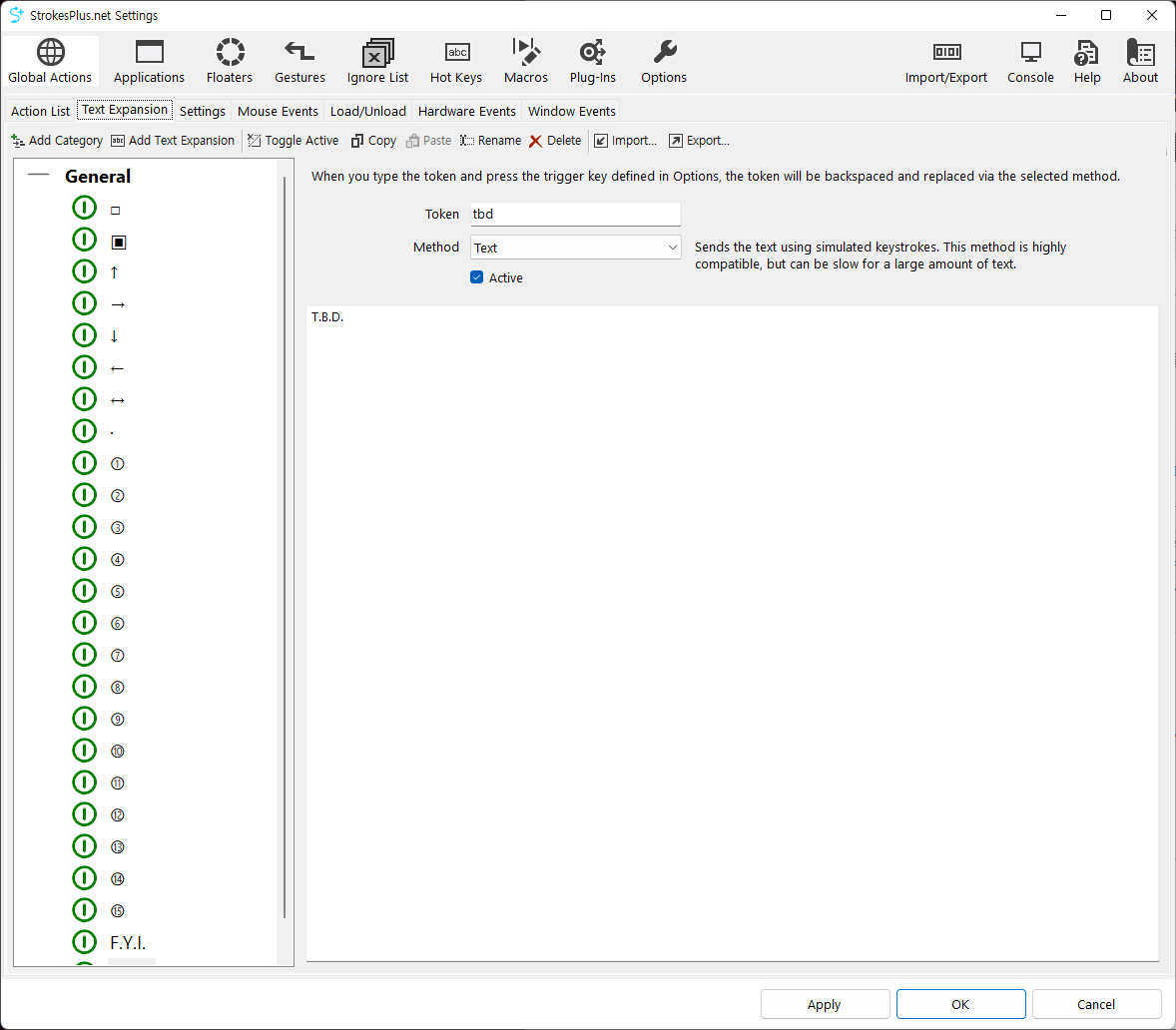 ② Global Actions → Text Expansion