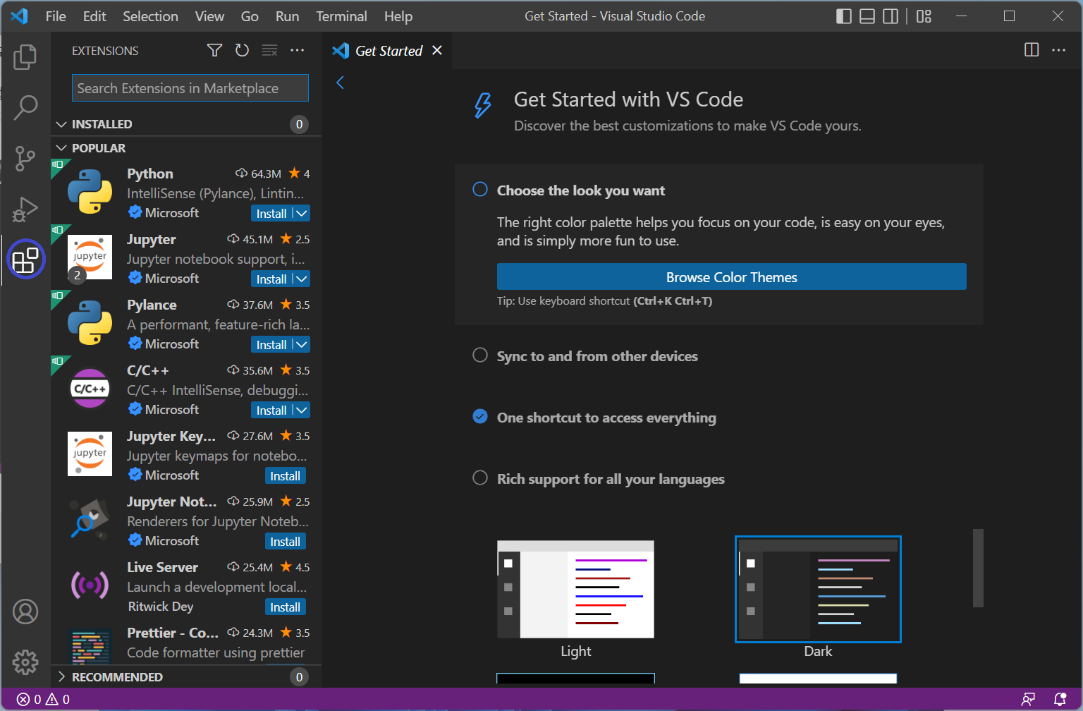 VS Code는 각 Programming 언어에 맞는 Extention을 제공합니다.