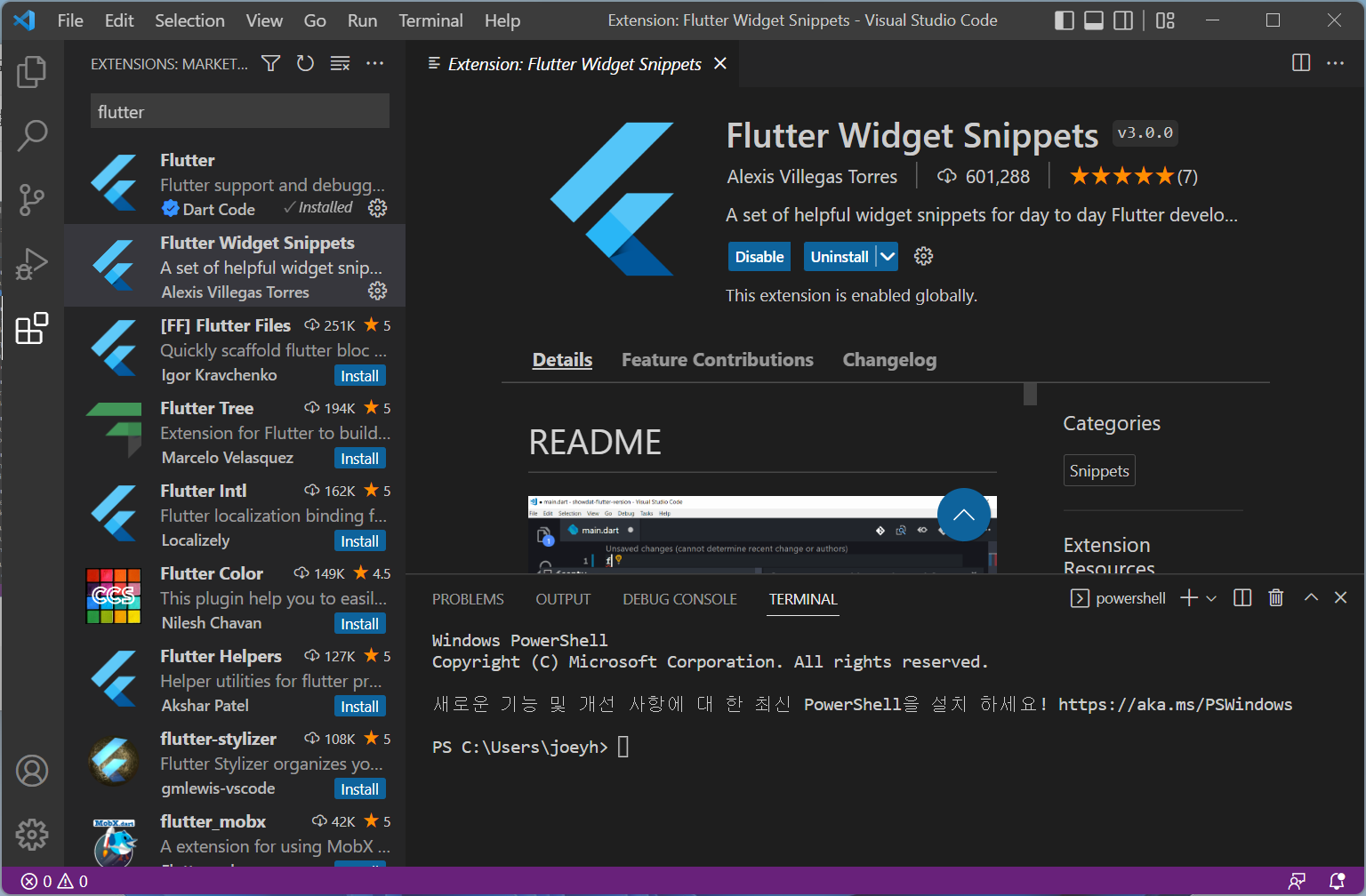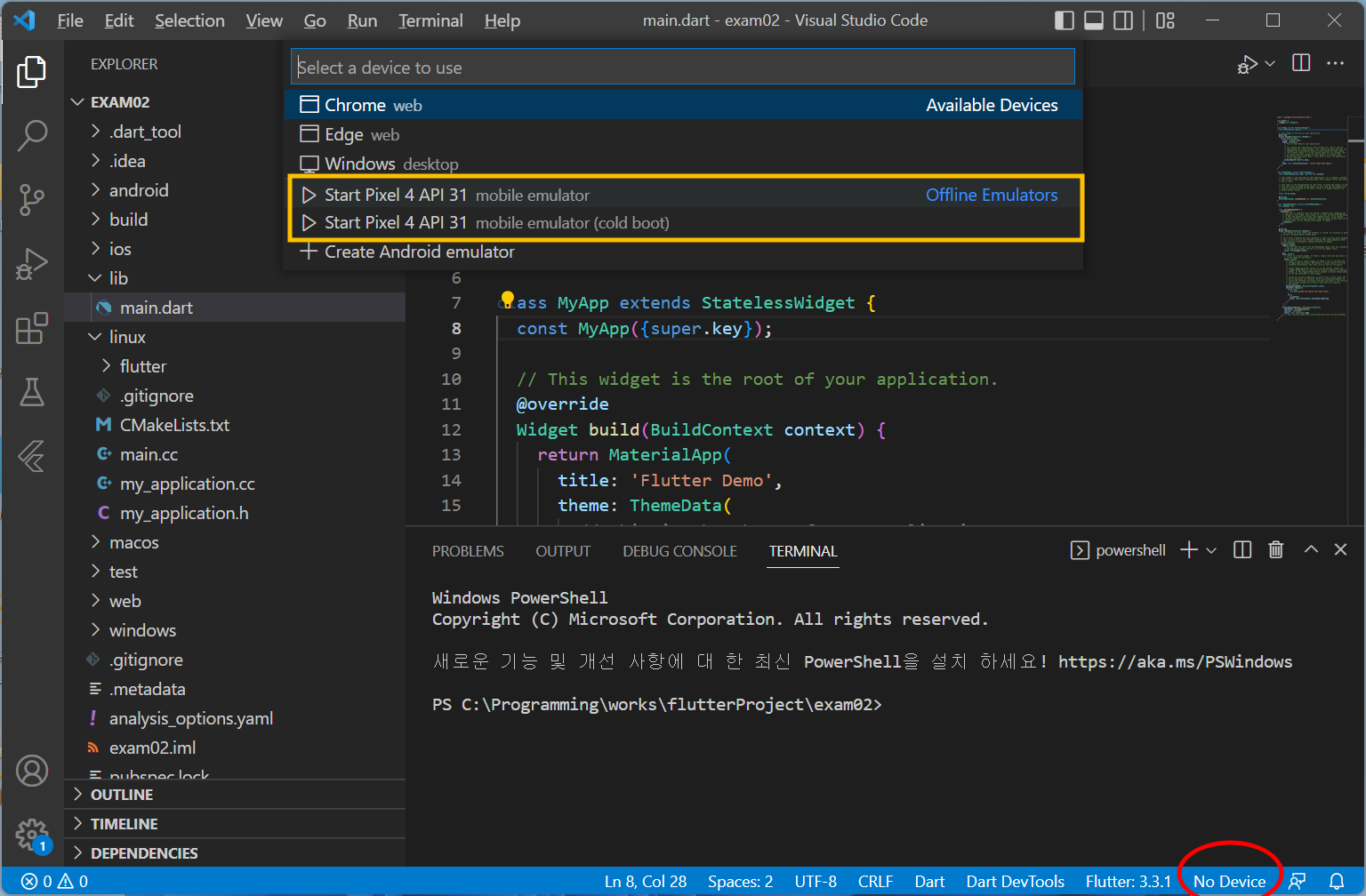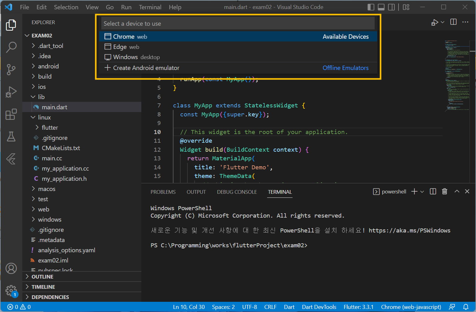 Flutter 설치 과정을 잘 쫓아오셨다면,