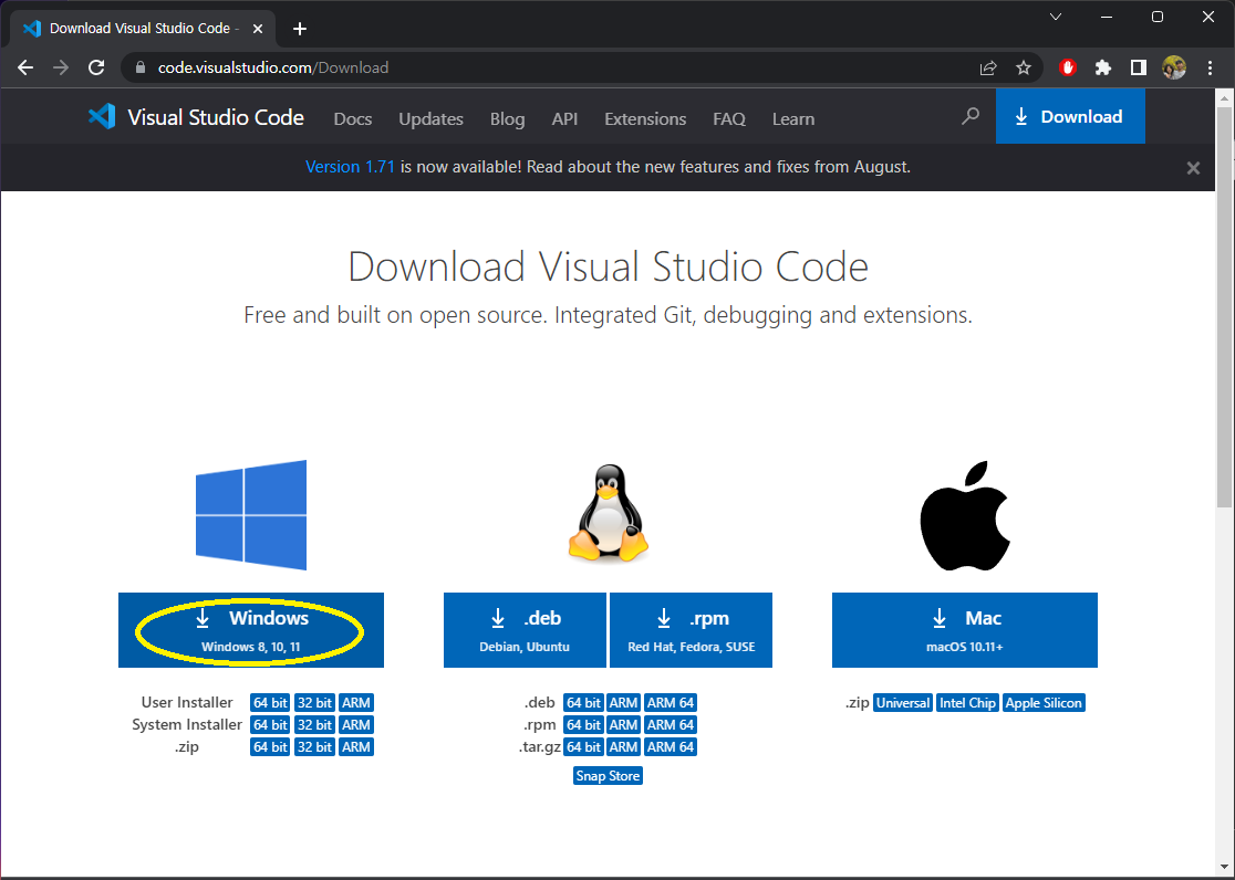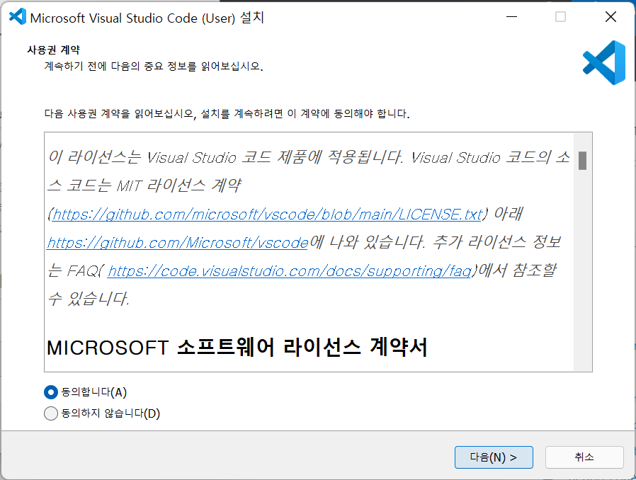 ① 홈페이지에서 최신 버젼의 Visual Studio Code 설치 파일을 다운로드합니다.
