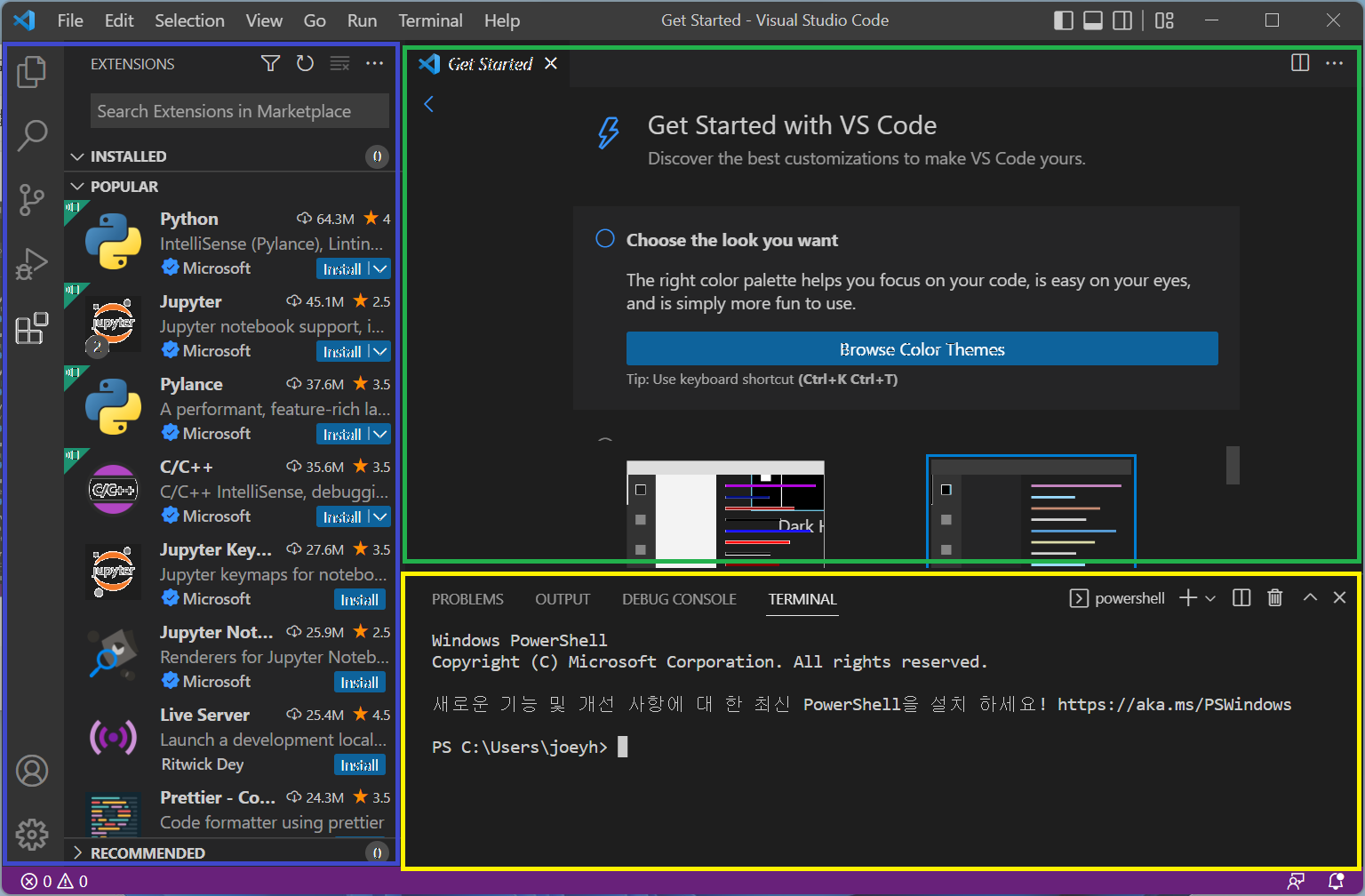 먼저, VS Code의 각 창 명칭을 먼저 보고 넘어갑시다.