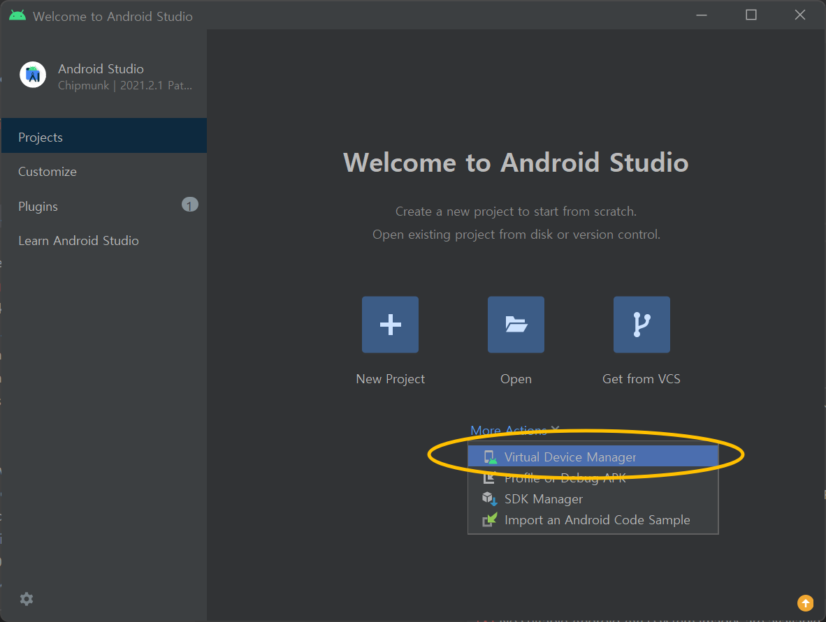 Android Studio에서 Virtual Device Manager를 실행해야합니다.