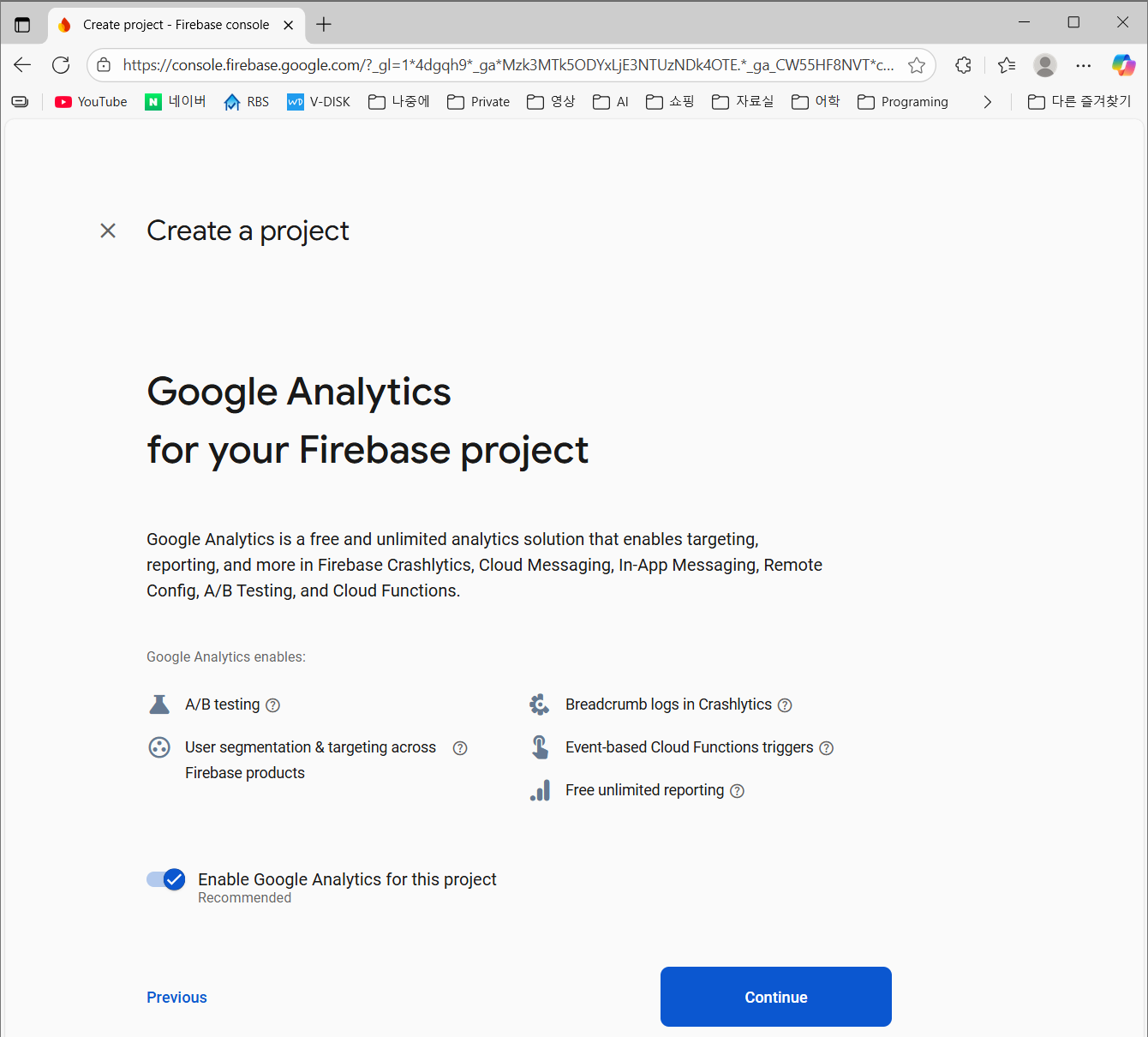 먼저 웹사이트를 통해 Google Firebase project를 만들고 필요한 세팅을 진행해야합니다.