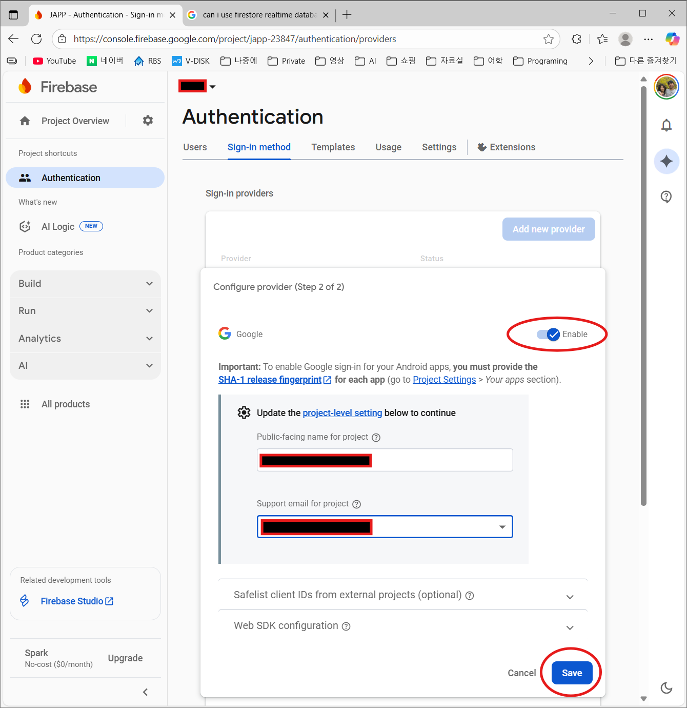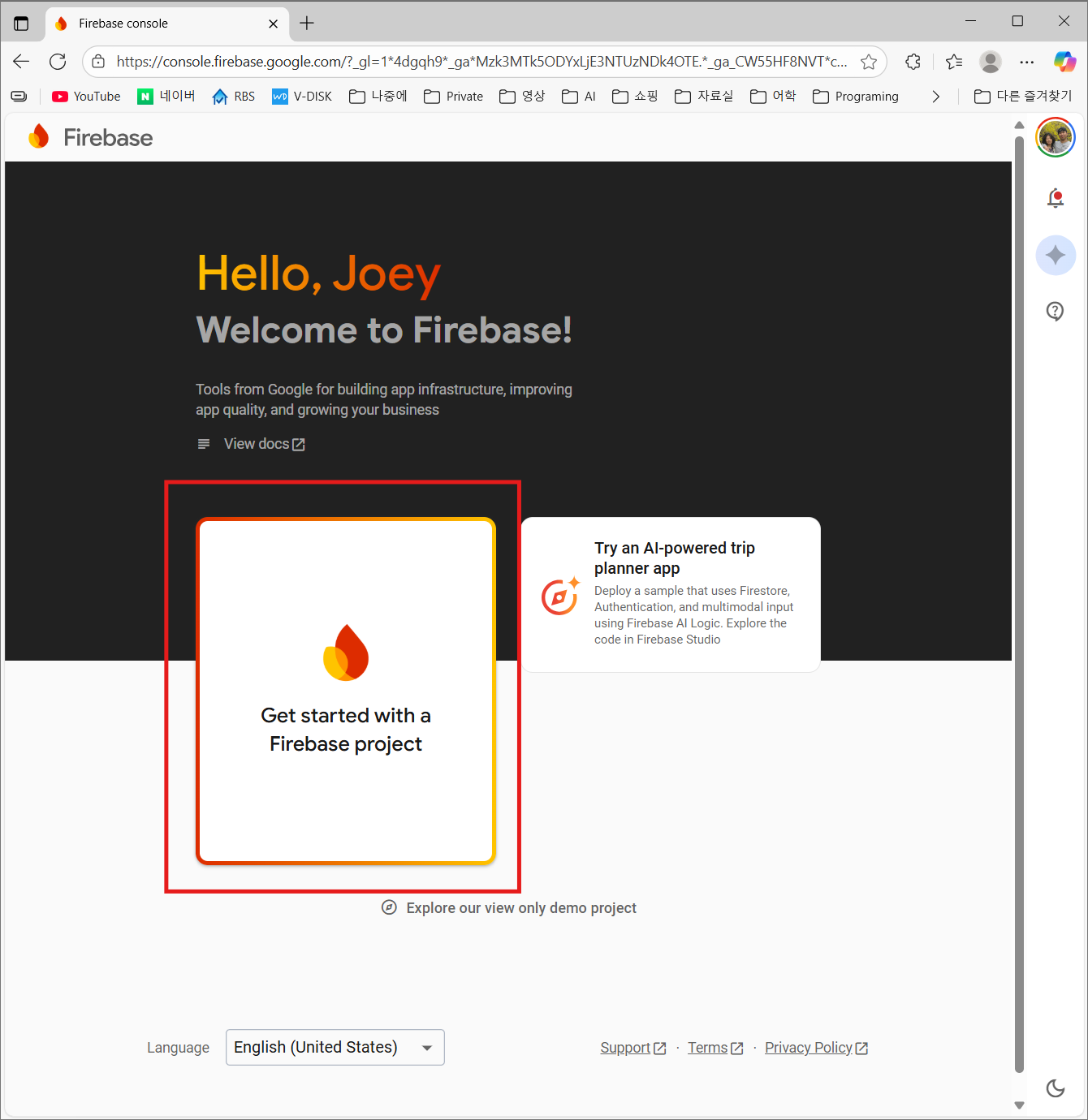 Google Firebase에서 Firebase project 생성